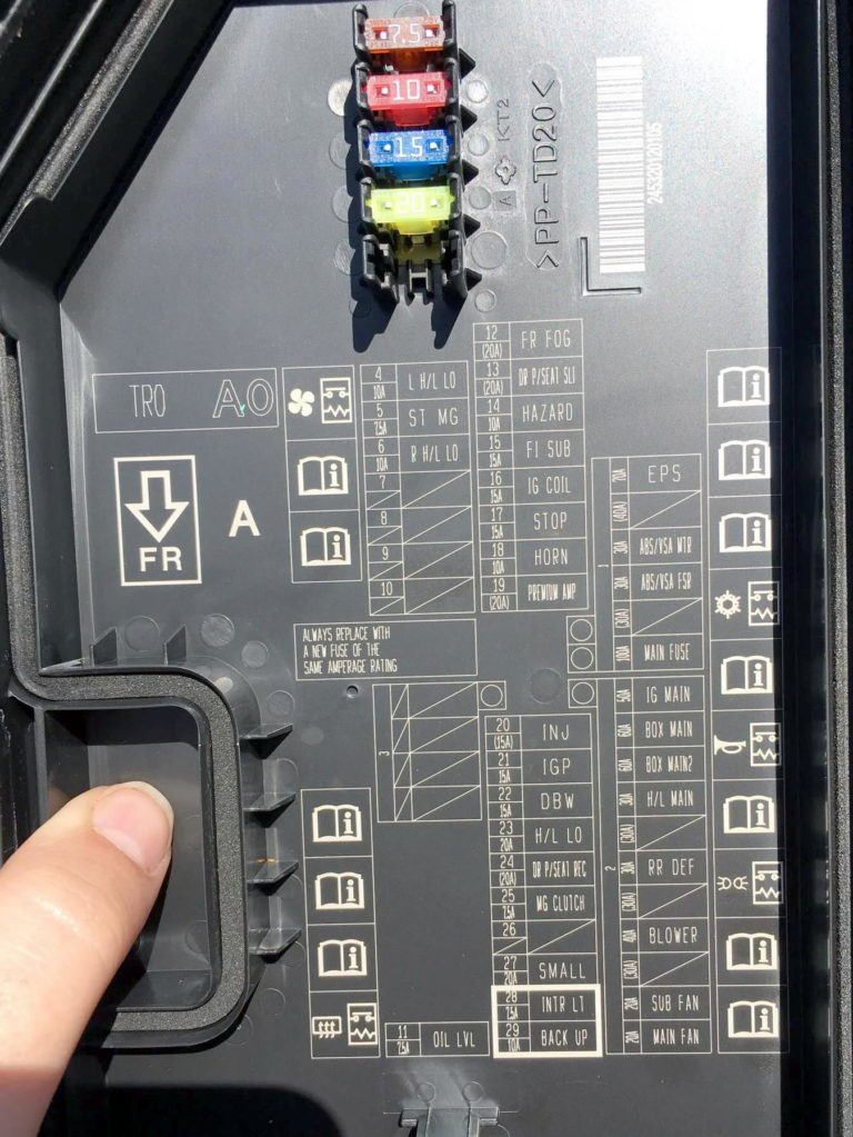 | 20 | 15A Wtryskiwacz światła mijania prawego reflektora |