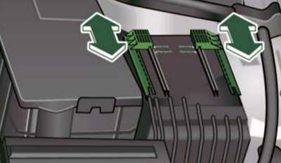 Odblokuj pokrywę bezpieczników i przesuń oba suwaki do przodu.