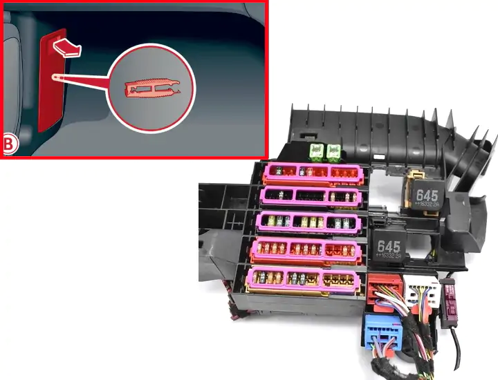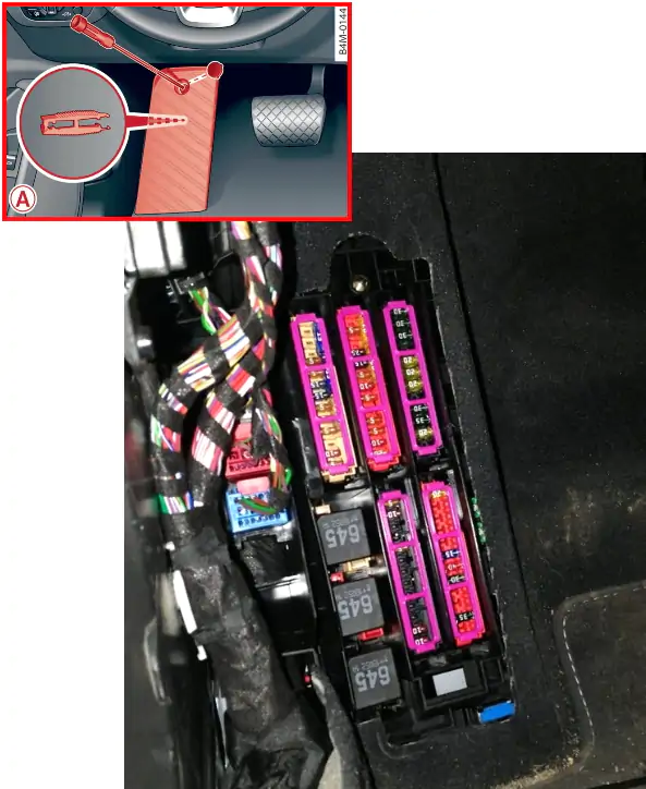 Skrzynka bezpieczników Audi A5 F5 we wnętrzu