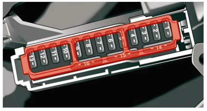 | 1 | Elektronika przednich siedzeń, wentylacja siedzeń, lusterko wsteczne, tylny panel sterowania klimatyzacją, podgrzewana przednia szyba, złącze diagnostyczne |