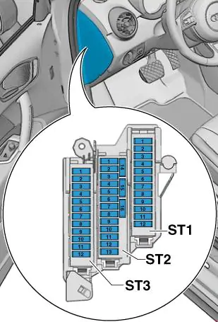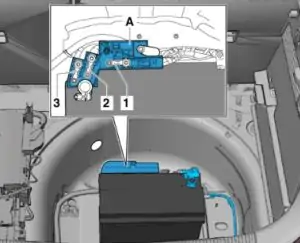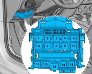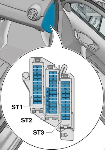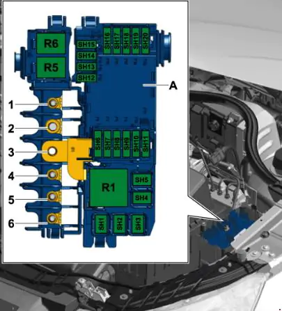 Blok znajduje się przy dodatnim biegunie akumulatora (tylko w samochodach z akumulatorem w bagażniku) .