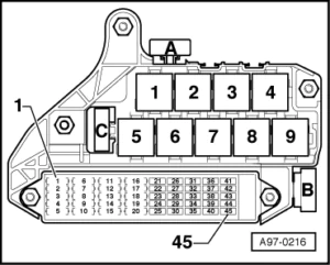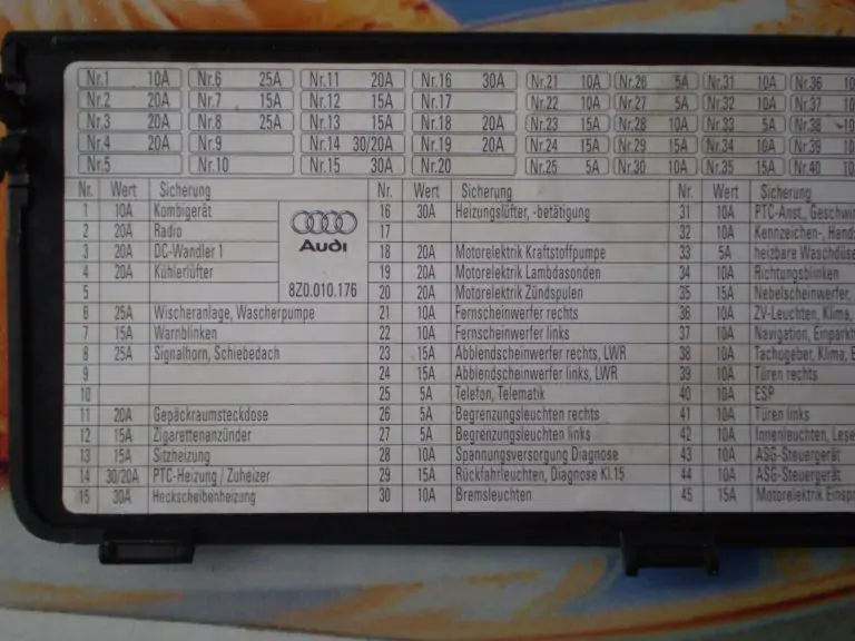 Skrzynka bezpieczników Audi A2 we wnętrzu