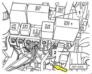 | 3 | Przekaźnik izolacji słonecznej -J309 Jednostka sterująca alarmem – J85 (taksówka) Przekaźnik syreny – J408 (pojazdy policyjne) Przekaźnik alarmu, alarm świateł drogowych – J461 (pojazdy specjalne) |