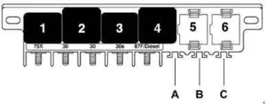 | 2 | Przekaźnik połączenia alternatora – J442 Jednostka sterująca alarmem – J85 (taksówka) Przekaźnik syreny – J408 (pojazdy policyjne) Obwód świateł przekaźnika alarmu – J549 (pojazdy specjalne) |