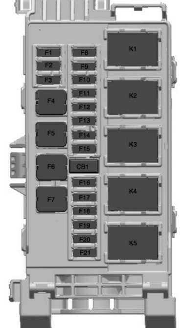 Schemat skrzynki bezpieczników i przekaźników Chevrolet TrailBlazer 3G