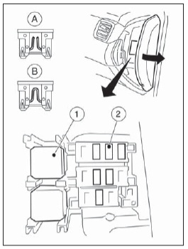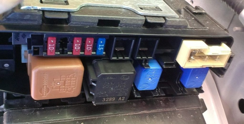W kabinie Nissana Qashqai j11 istnieje możliwość zamontowania 2 głównych bloków bezpieczników: po lewej i prawej stronie deski rozdzielczej (od końca, za osłoną ochronną).