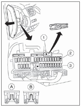 | 97 | 10A Lampa zespolona przednia prawa, lampa zespolona przednia lewa, sprężarka, czujnik zakresu skrzyni biegów, skrzynka bezpieczników pod maską, czujnik położenia neutralnego, przełącznik prędkości wstecznej, tylny czujnik położenia neutralnego |