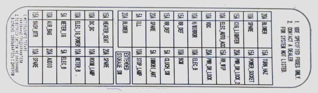 | 14 | 10A Wyłącznik świateł hamowania, jednostka sterująca klimatyzacją, jednostka sterująca lusterkiem, wzmacniacz prądu przemiennego, żaluzja, wyłącznik pedału hamulca | |