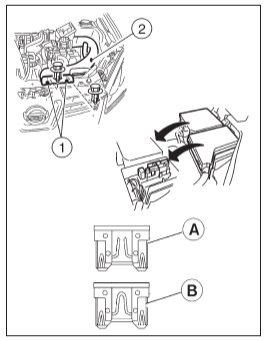 Znajdują się one w komorze silnika pod wlotem powietrza. Przykład dostępu pokazano na rysunku.