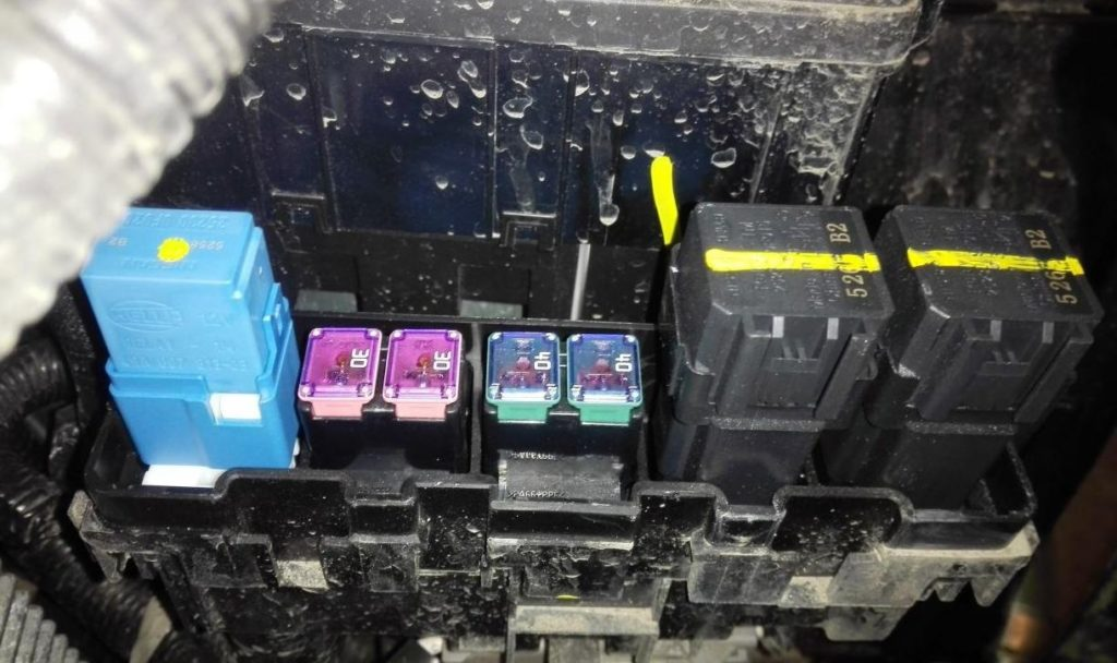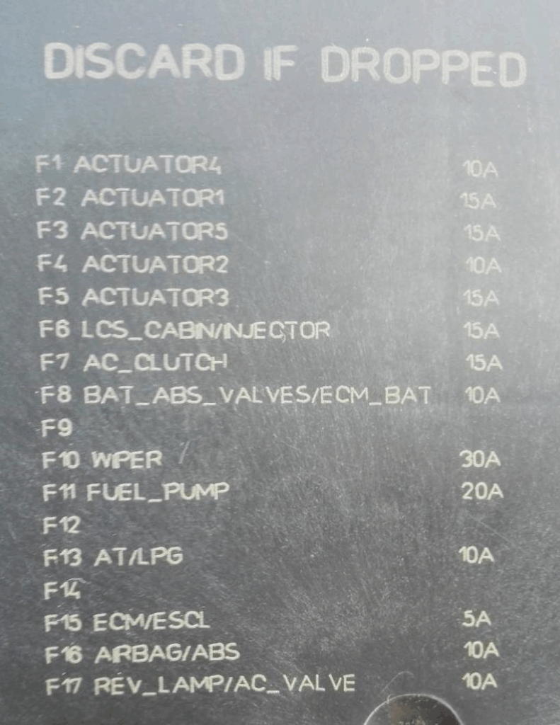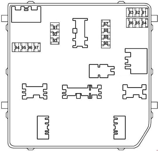 | 83 | 15A Przepustnica, jednostka sterująca silnikiem, zawór pochłaniacza par paliwa (EVAP), czujnik MAF, cewki zapłonowe, przekaźnik główny, zawór wydechowy, zawór ssący, pompa paliwa wysokiego ciśnienia, wtryskiwacze, blok bezpieczników komory silnika, czujnik stosunku powietrza do paliwa, podgrzewacz paliwa, czujnik wody w paliwie, zawór obejściowy płynu chłodzącego | |