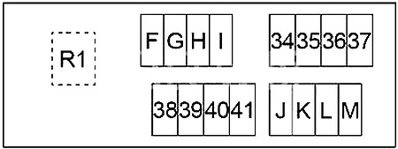 | L | 30A Przekaźnik rozrusznika, przekaźnik zapłonu (bezpieczniki: „1”, „2”, „3”, „4”, „10”, „11”, „12”) |