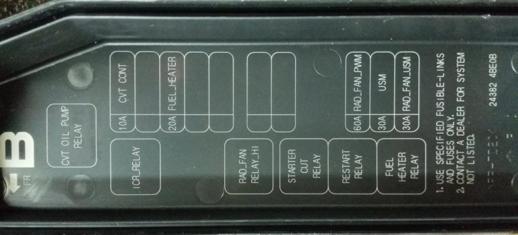Dodatkowe elementy można zamontować osobno pod panelem, na przykład bezpieczniki: przekaźnik pompy oleju i moduł sterujący skrzynią biegów (TCM).