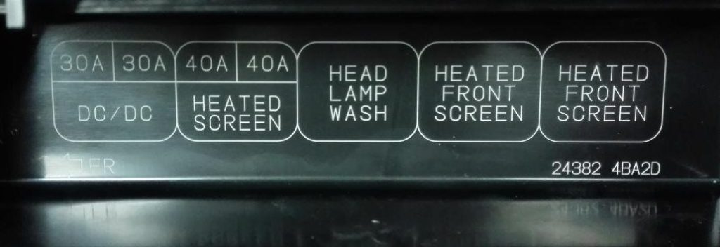 | U | 100A Prawy reflektor, prawe światło tylne, prawe światło przeciwmgielne przednie, sterownik świec żarowych, sterownik tłoka termicznego, bezpiecznik: „58” |