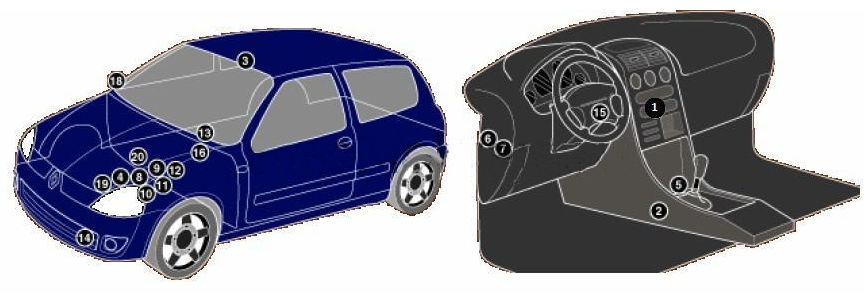 Druga generacja Renault Clio była produkowana w latach 1998, 1999, 2000, 2001, 2002, 2003 i 2004. W tym okresie model ten był wielokrotnie uznawany za Samochód Roku w Europie. Zachęcamy do zapoznania się z informacjami na temat rozmieszczenia bloków bezpieczników i przekaźników w Renault Clio 2, schematami bloków bezpieczników i ich przeznaczeniem, a także z osobną notatką dotyczącą bezpieczników odpowiedzialnych za działanie zapalniczki.