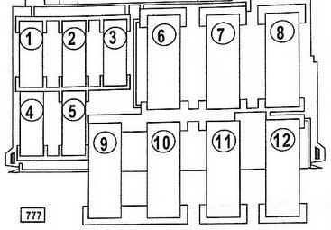 | 11 | Bezpiecznik dodatkowy (70A / 80A), przekaźnik podgrzewacza płynu chłodzącego – F9Q / K7K (6 / 00) – w pobliżu bloku bezpieczników 2 w komorze silnika |