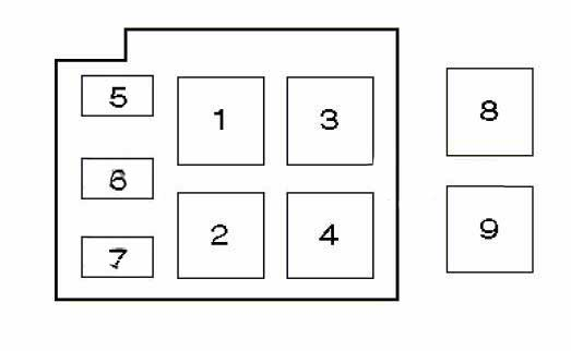 | 10 | Bezpiecznik pomocniczy (60A), przekaźnik podgrzewacza płynu chłodzącego – F9Q (^5/00) – w pobliżu bloku bezpieczników 2 w komorze silnika |