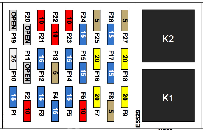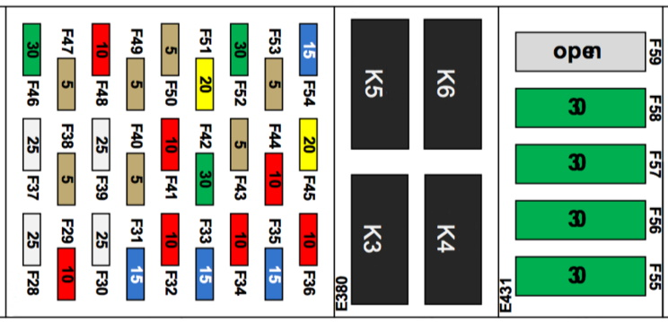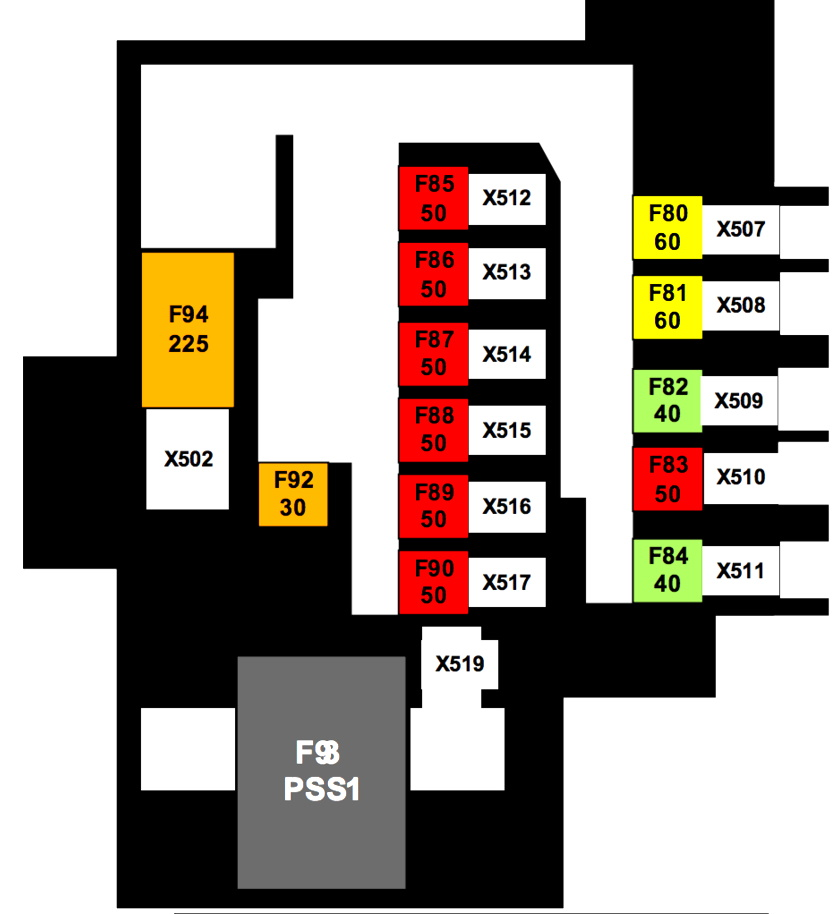 Schemat skrzynki bezpieczników Tesla Model S, X (2012 – 2016)